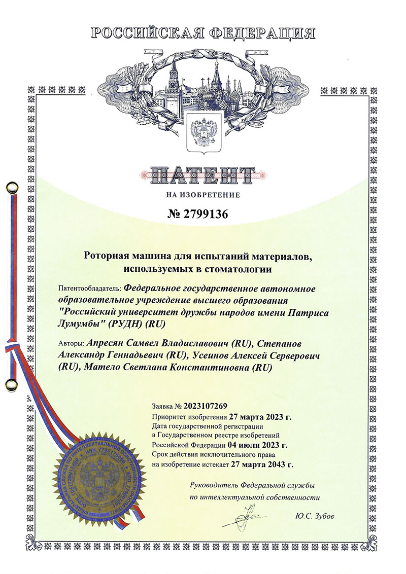 В декабре 2024 года Светлана Матело, руководитель ГК «Диарси» (бренд R.O.C.S.®), защитила докторскую диссерта­цию «Разработка стандарта абразивности в стоматологии» и представила первую отечественную методику оценки абразив­ности зубных паст и новый национальный индекс — РИА. Разработка выполнена Ин­ститутом цифровой стоматологии — струк­турным подразделением Медицинского института РУДН и НИЦ «Курчатовский институт».